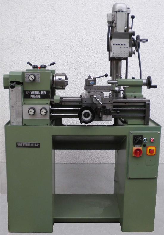 Hier sehen Sie meine Weiler Primus L+Z Drehmaschine. Dies ist das kleinste Modell mit Leit- und Zugspindel, welches auch Heute noch hergestellt wird. Meiner Meinung nach ist die Primus von der Bauart eine sehr gelunge Maschine.Die Primus ist mit einem Fräskopf ausgestattet. So können mit der Maschine auch Fräsarbeitern erledigt werden.